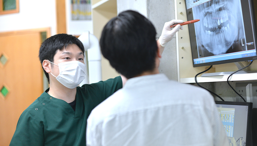 「患者さまのお口の状態は千差万別。だからこそ、正解は一つではない」そう考えながら、根気よく、丁寧に、患者さまの思いに沿った治療を行うことを大切にしています。診療では、患者さまにとって最良の治療を目指すのはもちろん、患者さまときちんとコミュニケーションをとり、相談しやすい雰囲気づくりを心がけています。