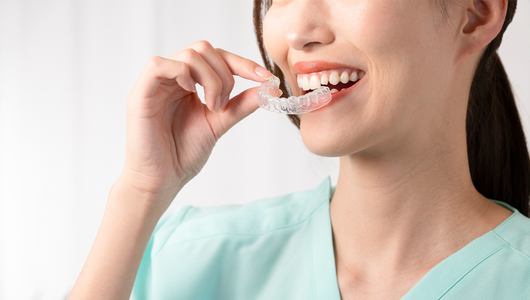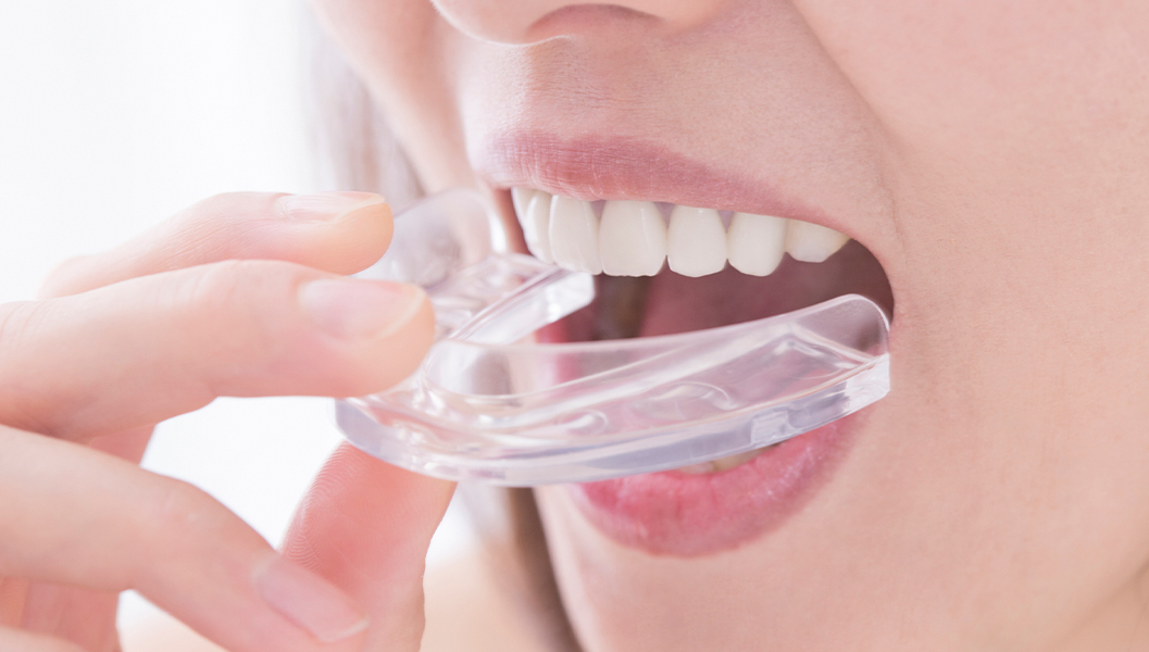 顎関節症の原因の一つは歯ぎしりです。歯ぎしりによるあごへの負担を抑えるため、「スプリント」と呼ばれるマウスピース型の装置を使用します。就寝時や症状が強い時にスプリントを装着することで、顎関節や周囲の筋肉への負担を軽減できるのです。